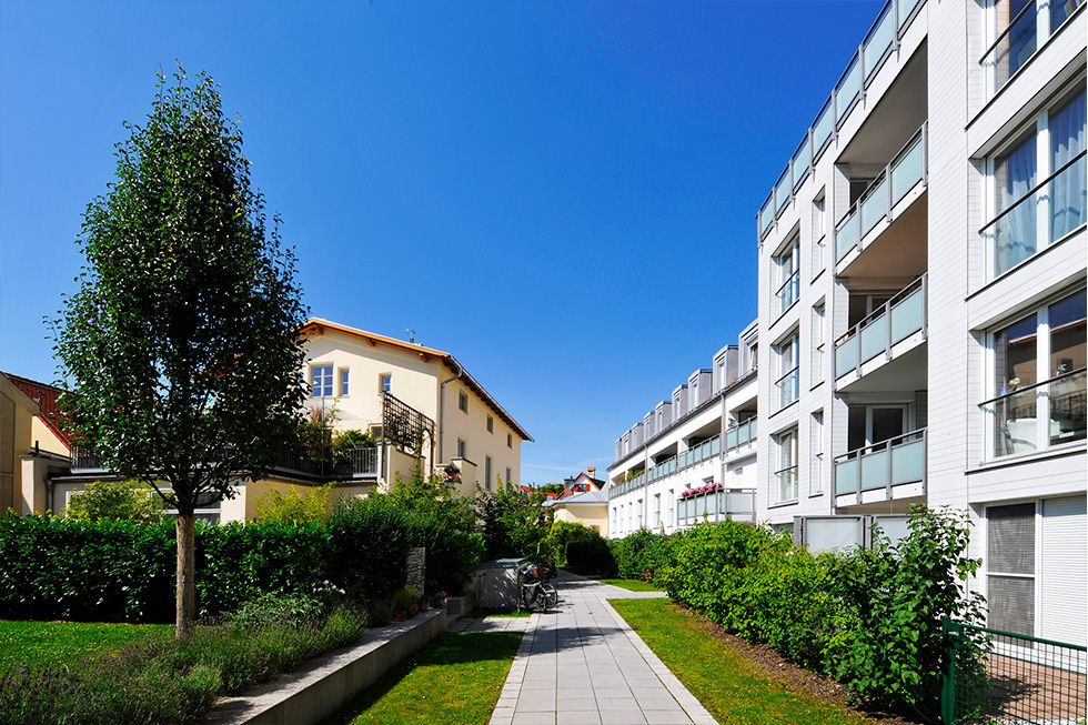Der einmaligen Lage entsprechend waren die Anforderungen des Landesamts für Denkmalpflege an die städtebauliche Einfügung und die Durchgestaltung der Neubauten sehr hoch.